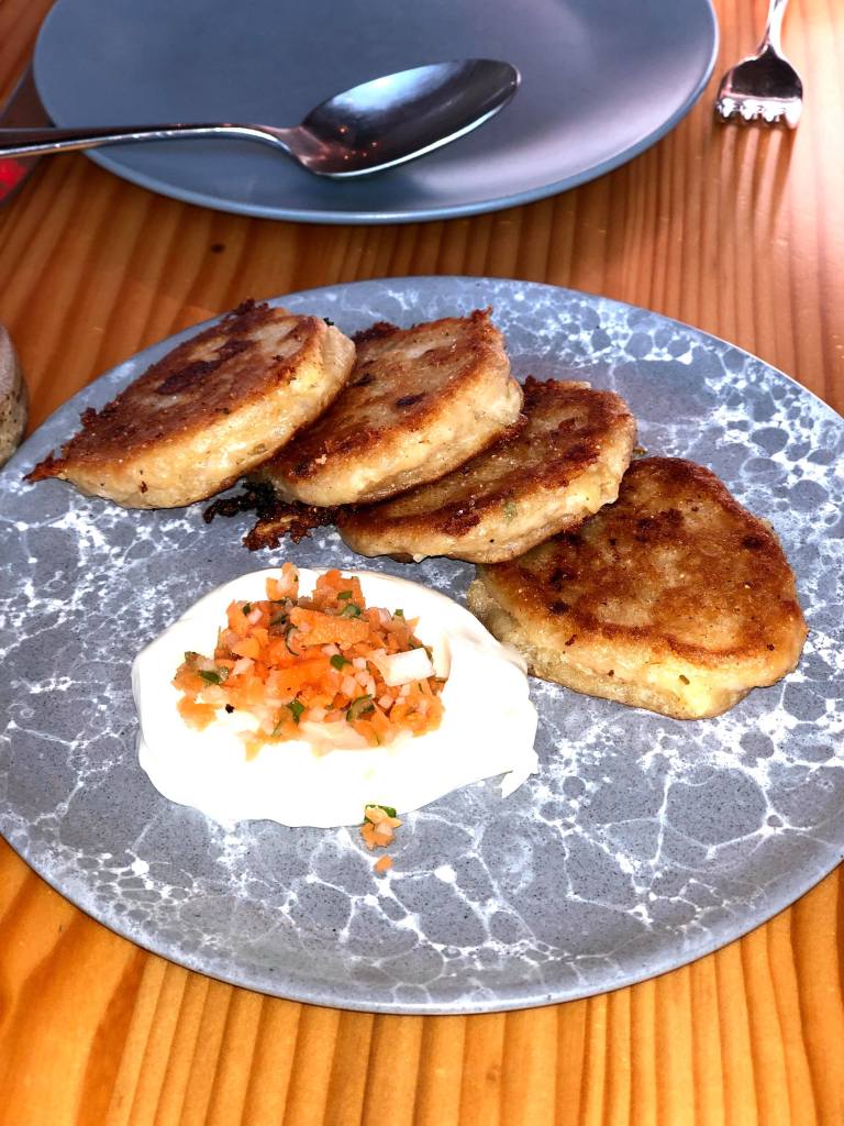 Off the dim sum menu, we’d ordered a couple items, but what stood out to me the most was the Corn & Red Fife Johnny Cakes. With pork, cheddar, turnip, creme fraiche, I’m not sure if it was meant to be an American variation of the popular Chinese dim sum dish turnip cakes. But it seemed like such to me. So of course, as a biased turnip cake lover, this was probably my favorite dish there (I wish I’d ordered more of it…)