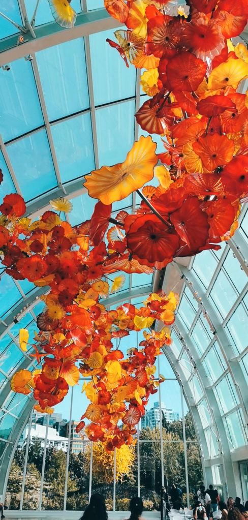 Now, we usually are big museum people, but this time around we didn’t actively go seek out any museums to avoid staying in an indoors location for too long. But we did stop by the Chihuly Garden and Glass, a beautiful museum that showcases the glasswork of Dale Chihuly. The glass structures are absolutely beautiful, and their centerpiece is definitely the glasshouse, from which you can also see the Space Needle. You can purchase a pass for just the museum, or one for both the museum and the space needle if you’d like to go up that as well. Since the museum is self-paced, you may find yourself staying anywhere between 1 to 2 hours. They also have people performing live demonstrations and Q&A sessions if you’re interested in how they create these beautiful places. But all in all, while tickets are certainly are on the pricier side, I’d recommend stopping by for an afternoon and marveling in the beauty and talent here.